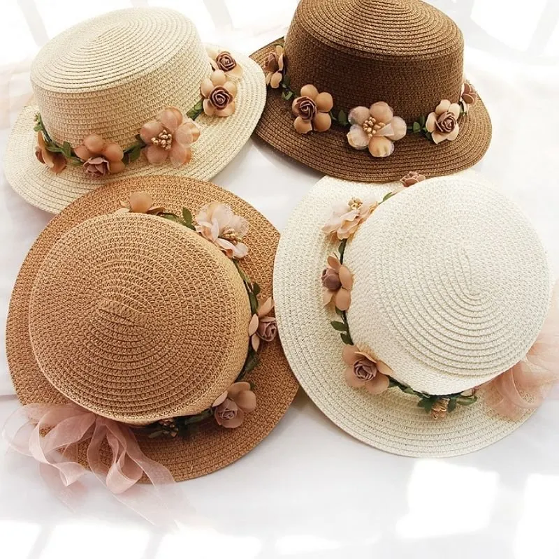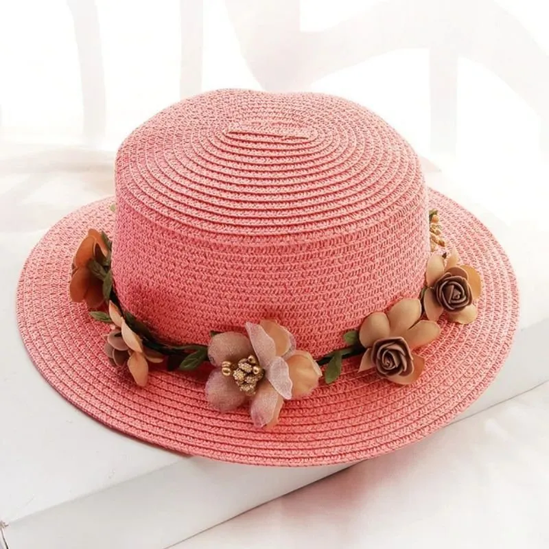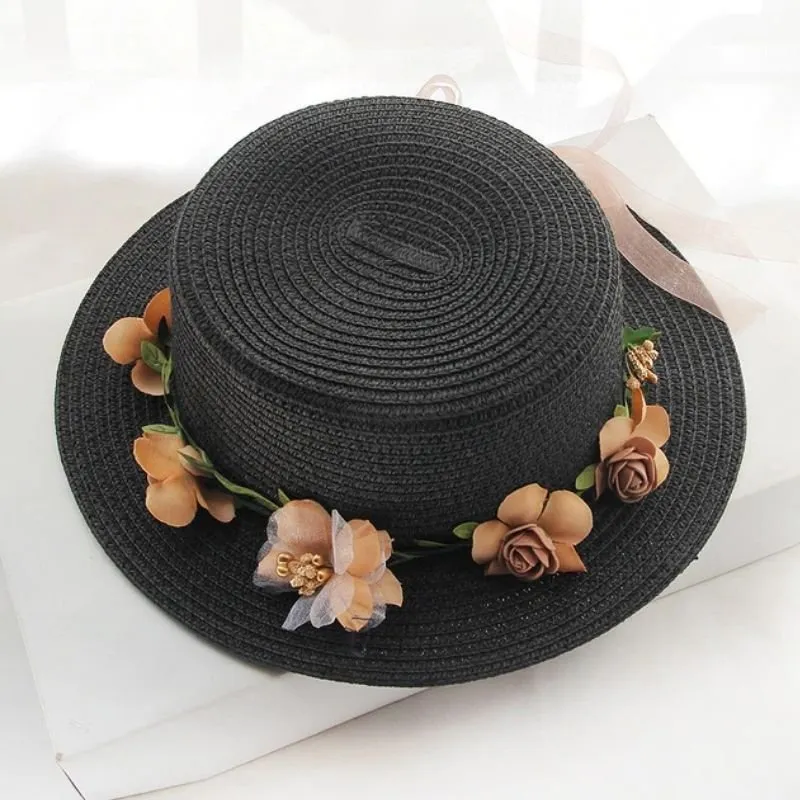Chapéu feminino em palha com detalhe de arco floral removível.