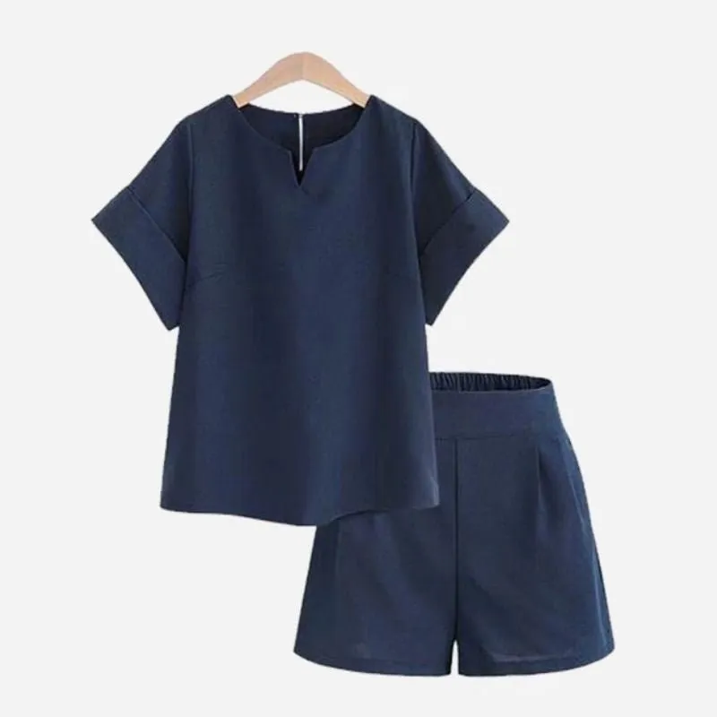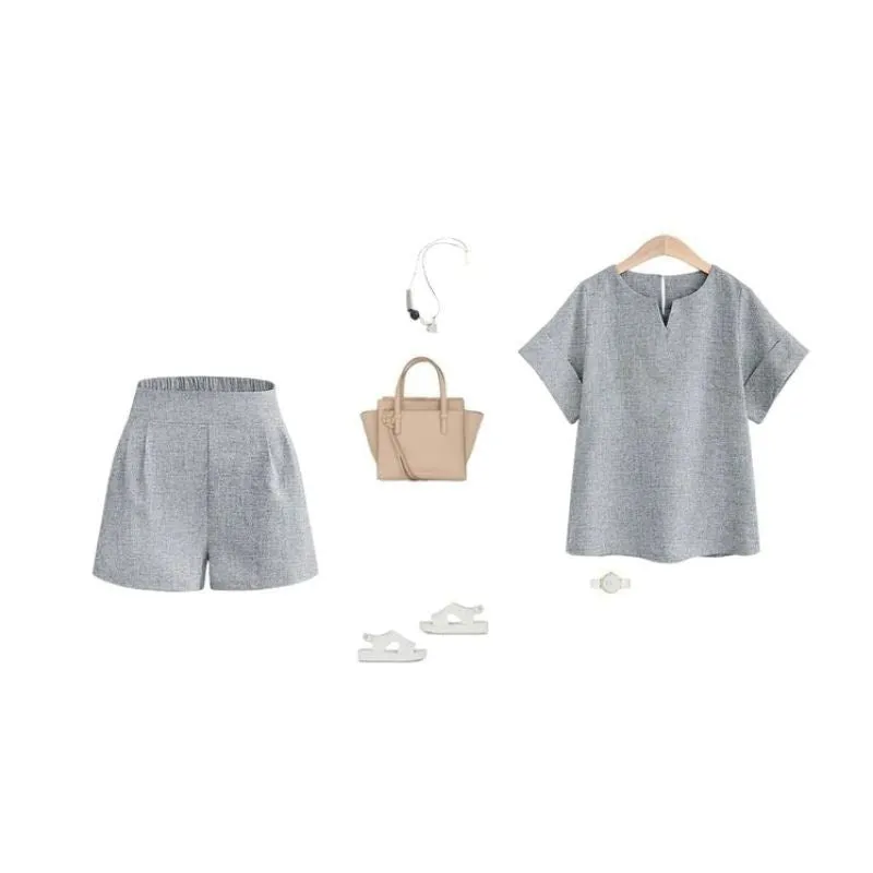 Conjunto composto por short e blusa de manga curta. Estilo monocromático e modelagem soltinha.