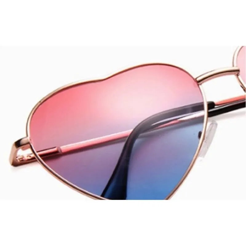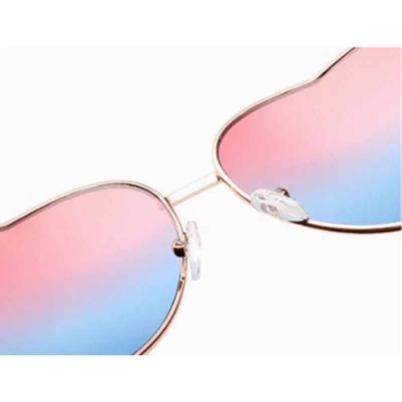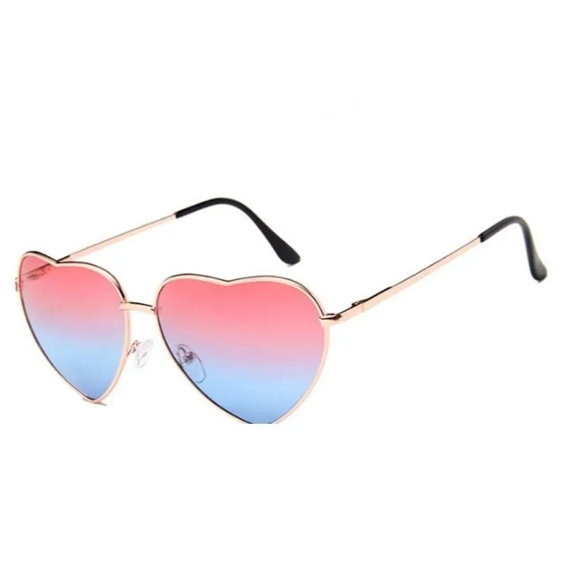 Óculos de sol com formato de coração. Possui lentes e armação de acrílico e proteção UV.